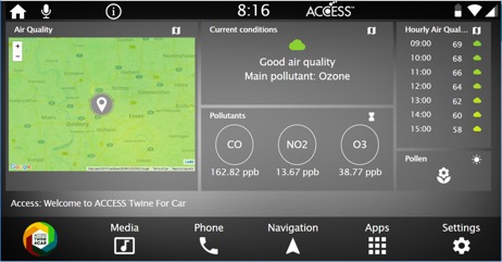Oberhausen, 21 May 2019 − ACCESS CO., LTD today announced that it has partnered with BreezoMeter, a provider of location-based global air quality and pollen data. Their complete air pollution and pollen solution for data awareness and actionability allows users to take control of the air they breathe, at home, at work, or on-the-go. The partnership will provide drivers and intelligent cars around the world with first-in-class, accurate, and relevant air quality and pollen data in real-time. BreezoMeter's data service will be available as a component of ACCESS’s Twine™ for Car (Twine4Car) infotainment service platform, empowering drivers and intelligent cars to choose healthier routes and destinations.