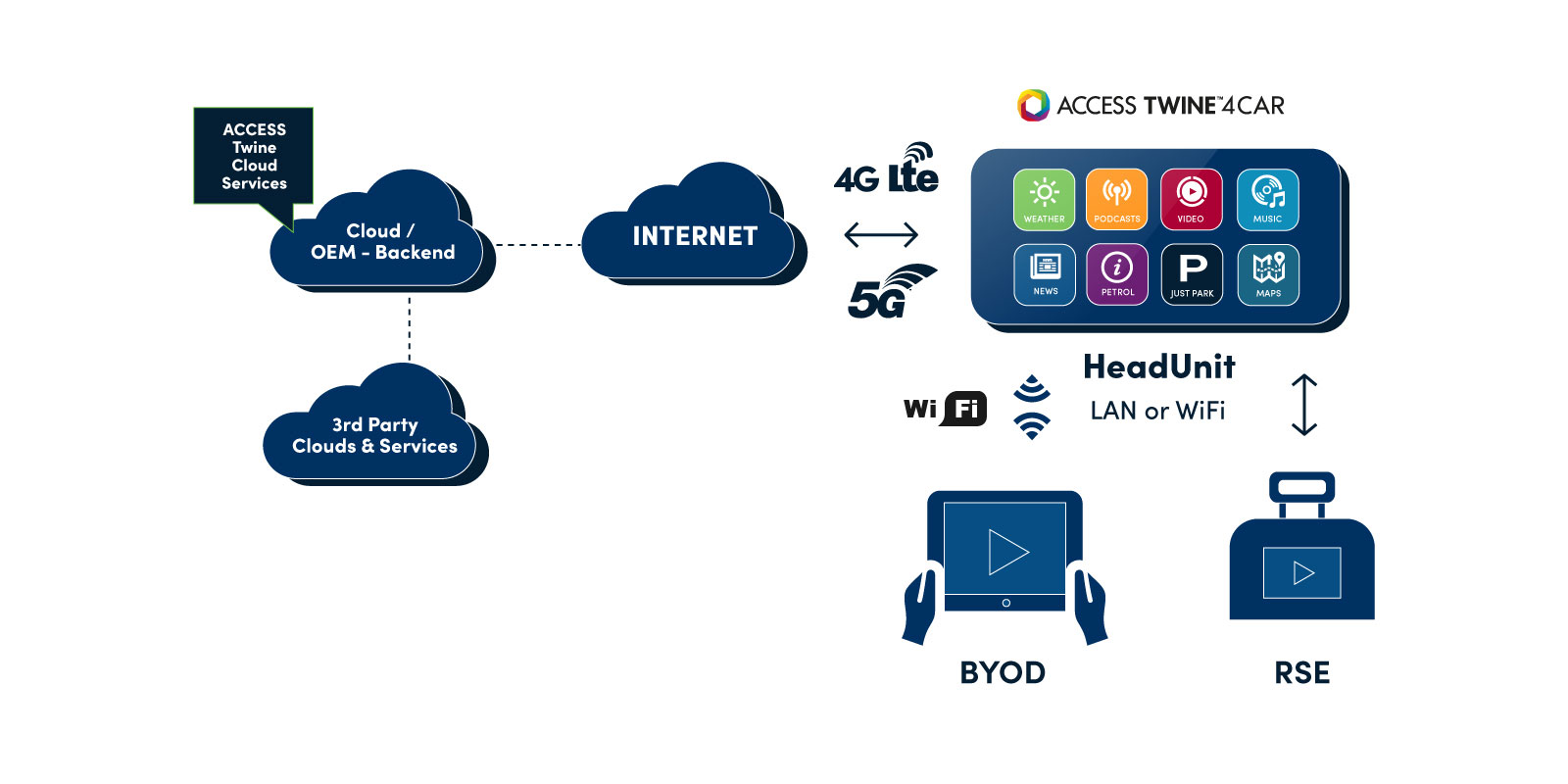 ACCESS Twine™ for Car 3.0 enables OEM branded App Stores, synchronised playback and in-car advertising