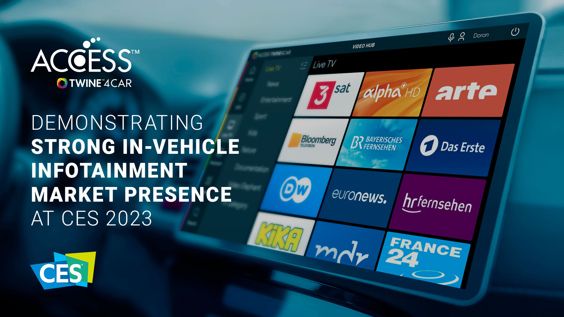 Oberhausen, Germany, 5th January, 2023 - ACCESS Europe GmbH today announces that ACCESS Twine™ for Car (Twine4Car) In-Vehicle Infotainment (IV) solution features in CES demonstrations with multiple companies at the show this year (Las Vegas, 5-8 January).