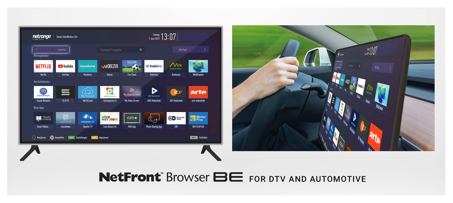 NetFront Browser BE v2.8 brings latest security updates and integrates with the NetRange App Stores, supporting broadcast, streaming and apps for smart TV and automotive